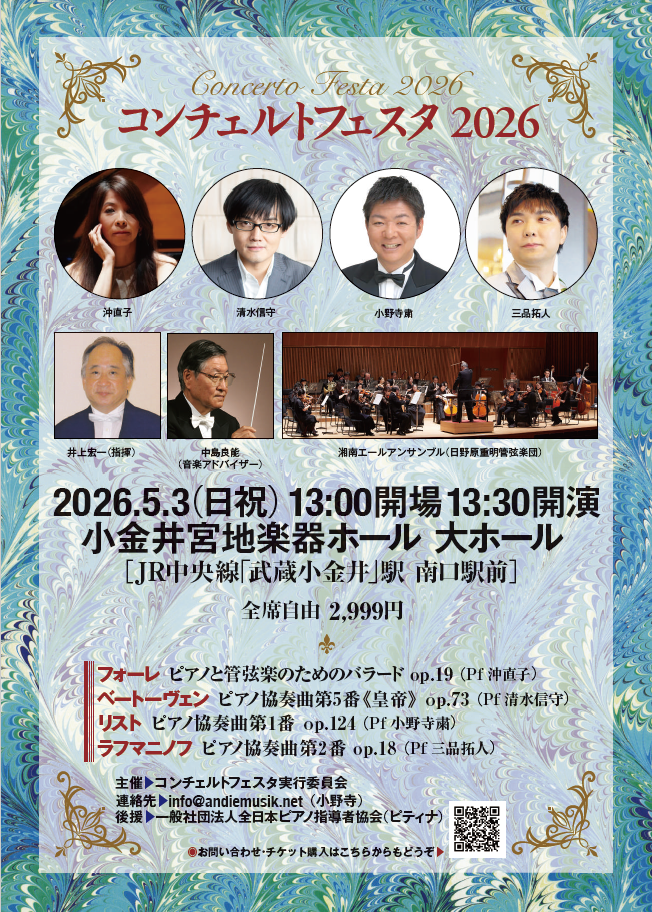 沖直子(ピアノ) 清水信守(ピアノ) 小野寺粛(ピアノ) 三品拓人(ピアノ)